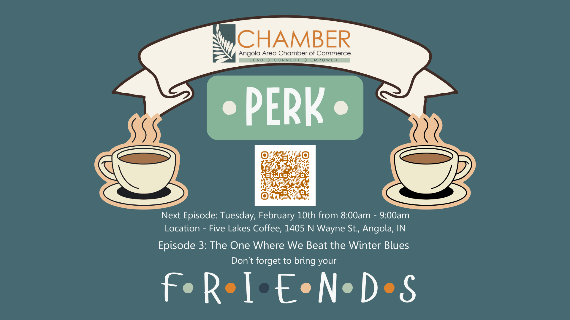| 2/10/2026 | February Chamber Perk ☕✨ Chamber Perk Episode 3 Premiere✨☕ We’re excited for our Next Episode of the Chamber Perk! This is a casual, friendly way to: More Details Coming Soon! Start your morning with great conversation, community connections, and caffeine! We can’t wait to see you there. more info... |