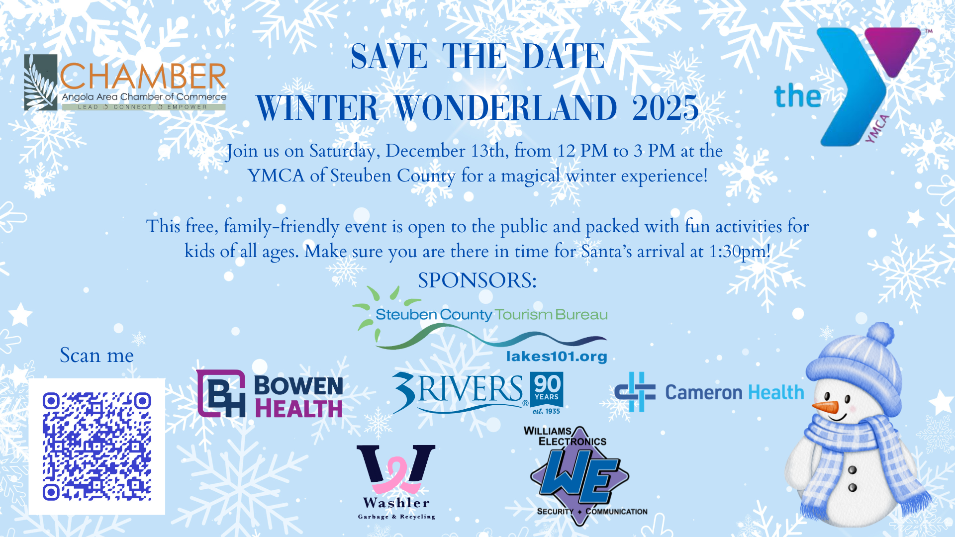 Join us on Saturday, December 13th, from 12 PM to 3 PM at the YMCA of Steuben County for a magical winter experience!