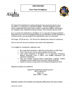 Ad Title:Part-time Firefighter Location: Angola, IN Post Date: 05/20/25 City: Angola Zip: 46703 Website:visit our website... Description: The Angola Fire Department is seeking individuals who possess the desire to be a servant for our community as a part-time firefighter. Part-time firefighters perform various assignments that include shift coverage to supplement staffing, responding to fire emergency calls, department training exercises, and community service events.