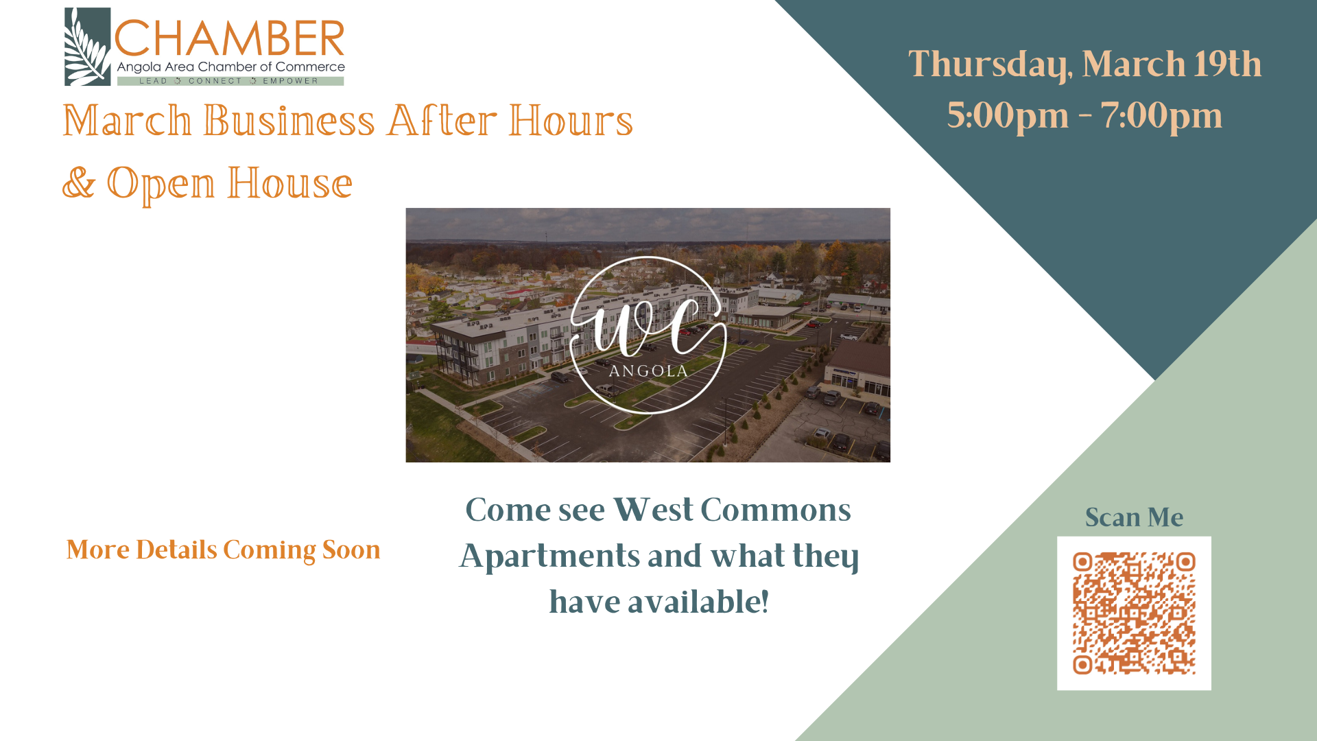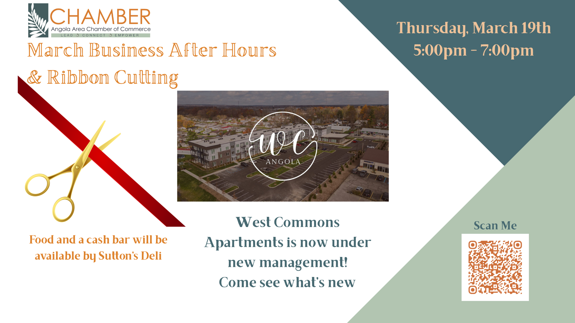 Join us for our March Business After Hours and Open House, hosted by West Commons Apartments.