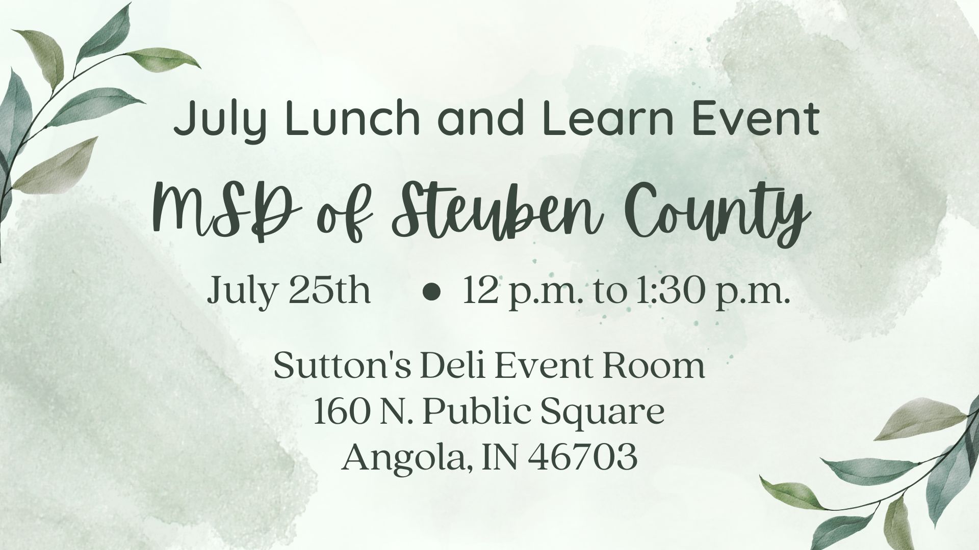 Registration Now Closed. July Lunch and Learn with Guest Presenter MSD of Steuben County